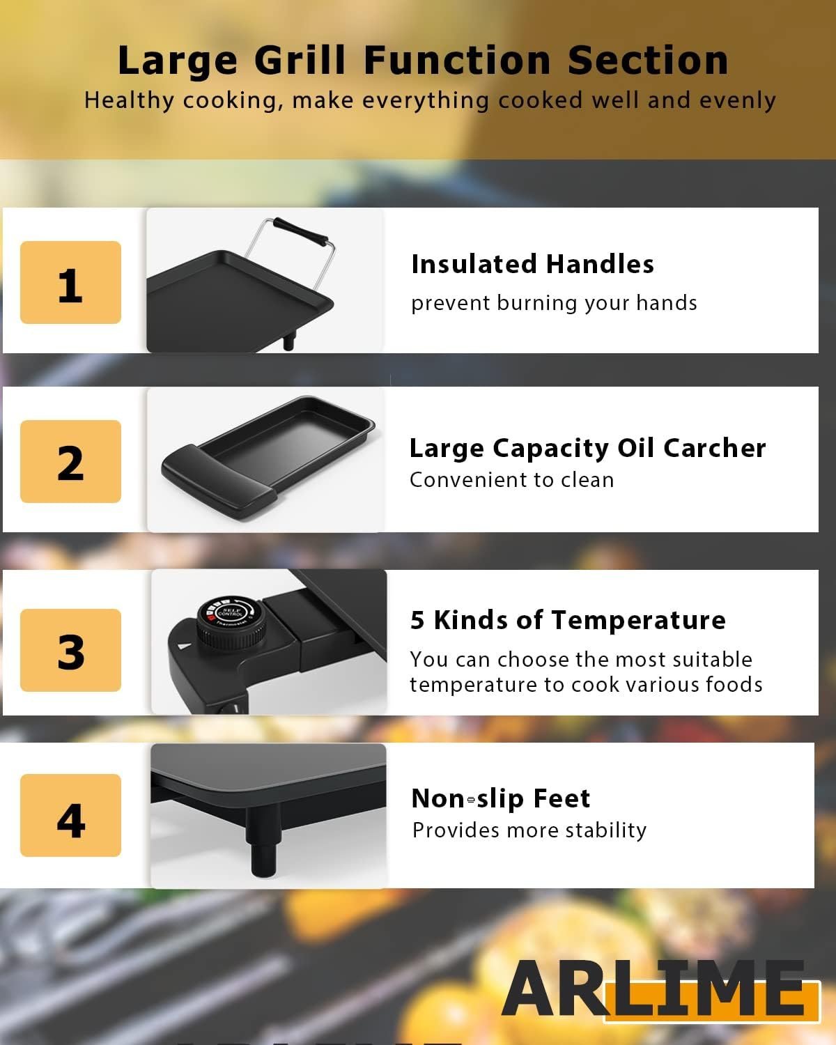 El tama?o 90×23 cm es ideal para cocinar paninis, hamburguesas, verduras y carnes al mismo tiempo, ahorra much¨ªsimo tiempo.